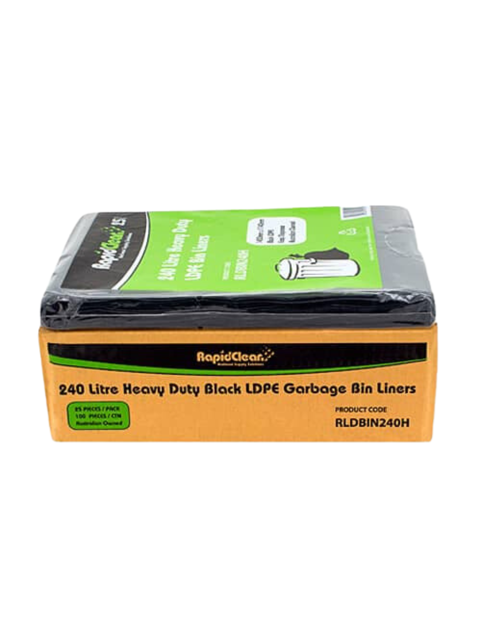 RapidClean All Purpose Black LDPE Garbage Bags 240L